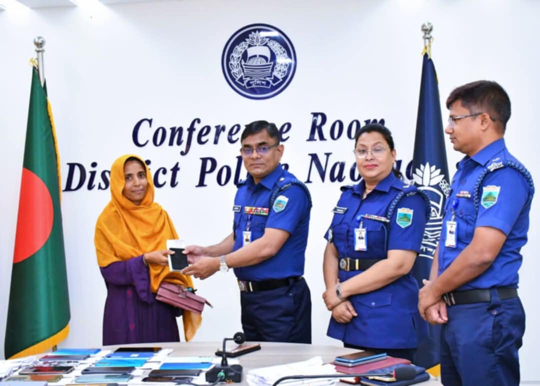 নওগাঁ পুলিশ সুপারের কার্যালয়ের সম্মেলন কক্ষে রবিবার (২৫ মে) পুলিশ সুপার মোহাম্মদ সাফিউল সারোয়ার বিপিএম নওগাঁ জেলা পুলিশ কর্তৃক উদ্ধারকৃত ৬২টি হারানো মোবাইল ফোন যাচাই-বাছাই করে প্রকৃত মালিকদের নিকট হস্তান্তর করেন।